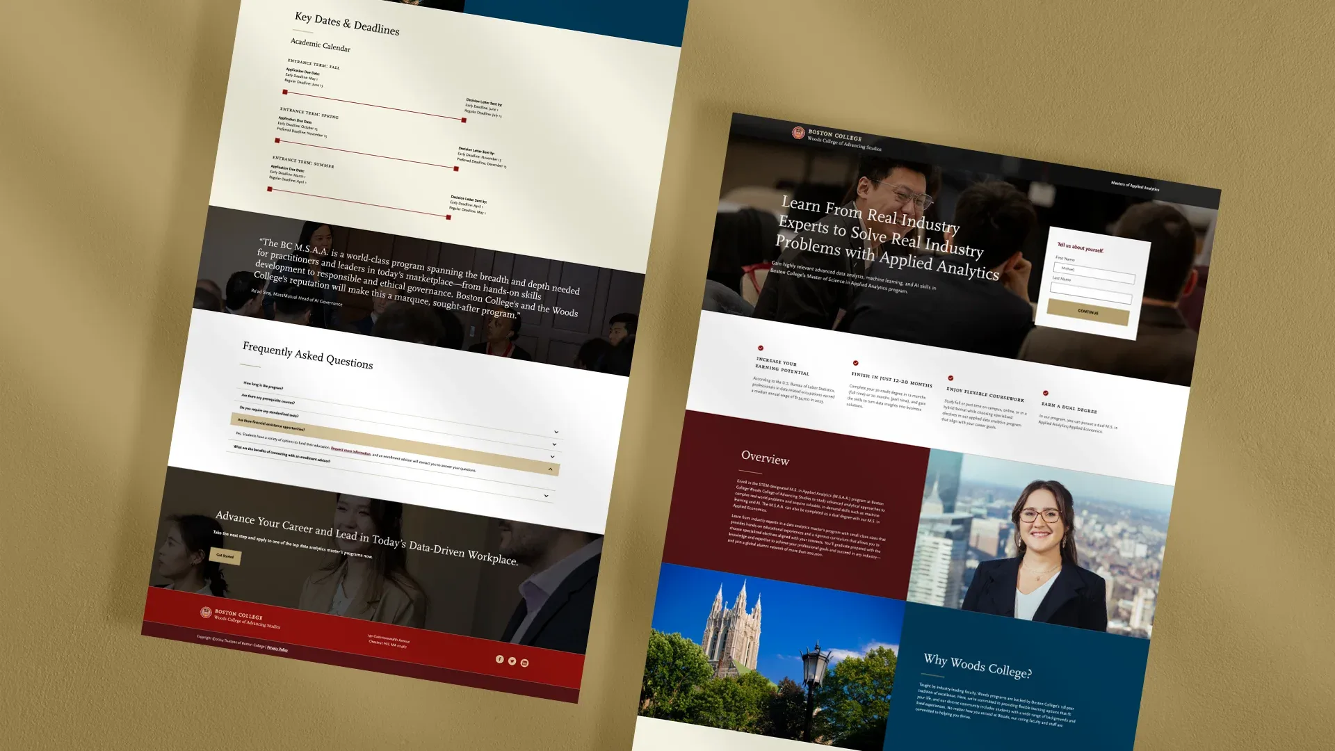 Authentic student and faculty photography paired with testimonial-led creative built trust and relatability. Human stories brought the rigorous curriculum to life while reinforcing the prestige of the Boston College name.