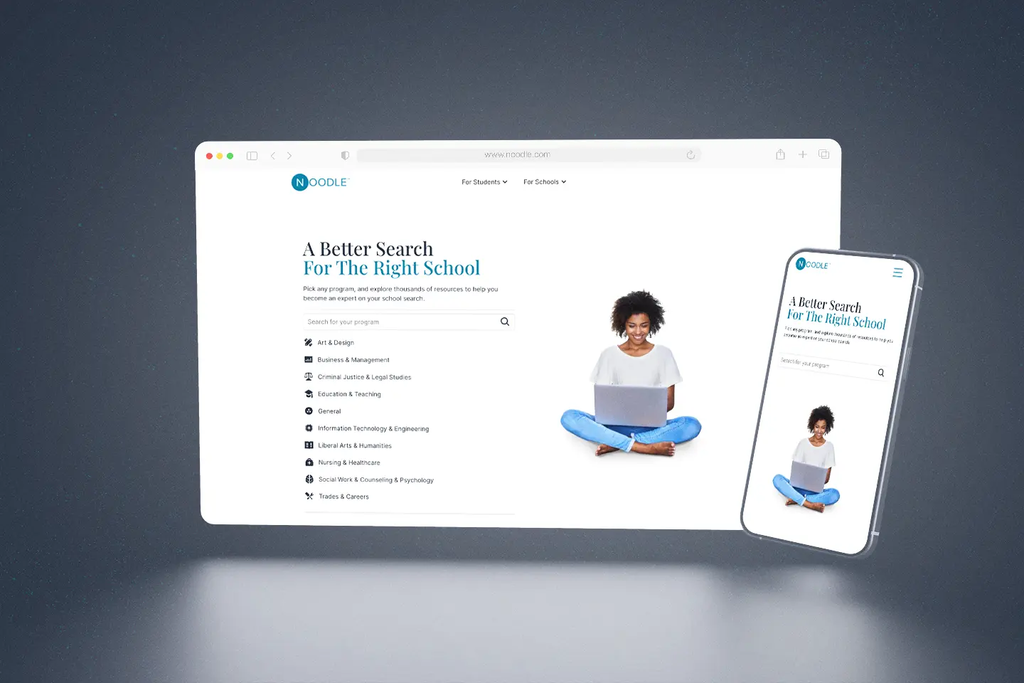 A comprehensive brand update that gave Noodle a sharper, more distinctive identity in the higher education space — new brand and editorial guidelines, a redesigned website, and a built-from-scratch visual and photo library.