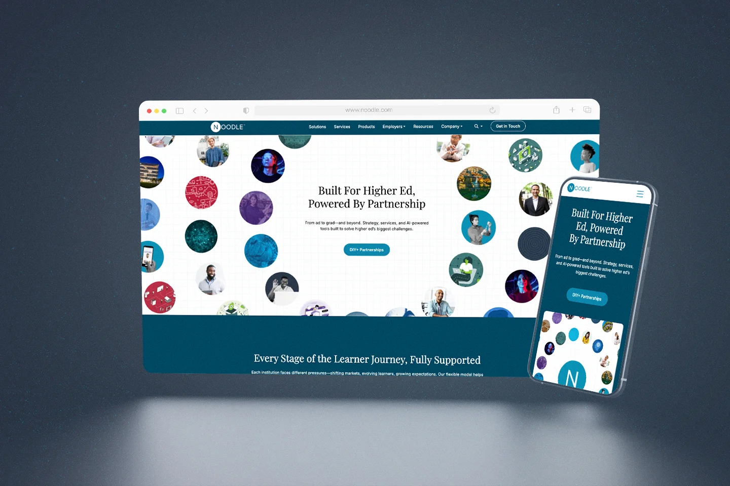 The result was a site that communicated Noodle’s full-funnel service offering — from marketing and enrollment to learning design and student support — in a way that was immediately legible to a university partner evaluating options.