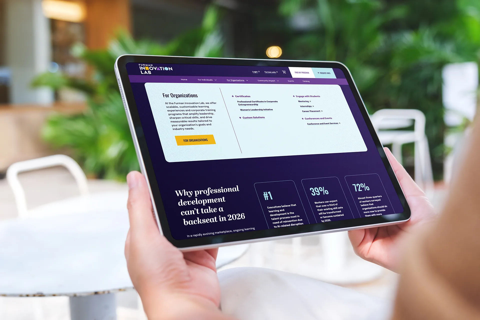 As Creative Director, I set the tone and strategic direction, guided the art director through concept development, directed copy and visual refinement, and led client presentations — translating university partner feedback into actionable direction for my team.